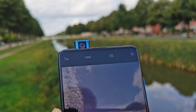 De Xiaomi Mi 9T beschikt over een uitstekende selfiecamera van twintig megapixel (f/2.2). Deze komt, inclusief licht en geluid, aan de bovenkant uit de behuizing omhoog. Selfies zien er prima uit en ook de AI doet bij portretten goed z’n werk. De bokeh-functie werkt fijn, maar de AI zit er soms even naast met betrekking tot het onderwerp, waarbij de uitsnede van een scherpe voorgrond en wazige achtergrond niet helemaal klopt. Zorg voor wat afstand tussen het onderwerp en de achtergrond en de pop-up camera levert zeer goed werk af. Het is overigens niet de snelste pop-up camera van dit moment, want het kan wel twee seconden duren voordat deze klaar is voor gebruik. Ontgrendelen middels gezichtsherkenning duurt dan ook vaak net even te lang, waardoor de vingerafdruksensor onder het display een betere keuze is.