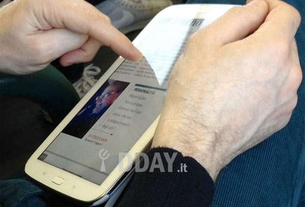 In de foto’s, gespot door het Italiaanse DDay, zien we duidelijk dat iemand aan het werk is met een nieuwe tablet van Samsung. Wat we uit deze foto’s kunnen halen is dat de Galaxy Note 8.0 beschikt over een speaker boven het display in plaats van aan de zijkanten, met name gericht is op gebruik in portrait modus, over een home-knop met twee capacitieve knoppen beschikt en is uitgerust met een S-Pen stylus die rechts onderin de behuizing geschoven kan worden.