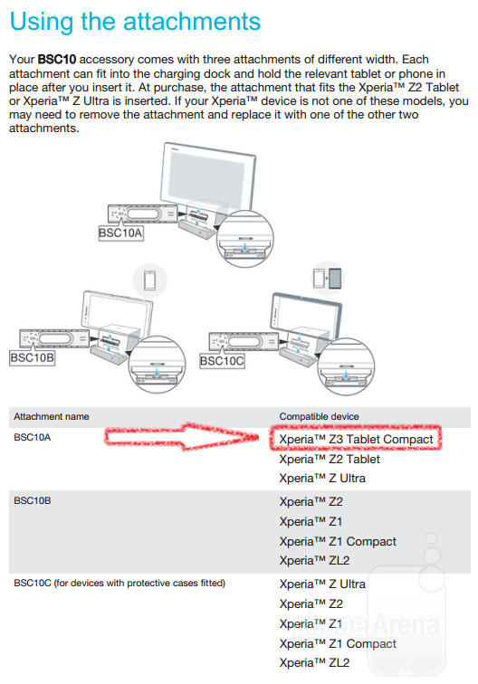 Het is goed mogelijk dat een nog niet aangekondigde, compactere tablet van Sony, onder de naam Sony Xperia Z3 Tablet Compact, is uitgelekt via de handleiding van één van Sony’s eigen producten, namelijk die van de Sony BSC10. Een plaatje van de handleiding is op internet geplaatst om dat te bewijzen. De BSC10 is een bluetooth speaker en oplaadstation in één en in de handleiding van het apparaat worden er een aantal tablets genoemd die compatible zijn met de speaker: de Sony Xperia Z3 Tablet Compact is daar dus één van.