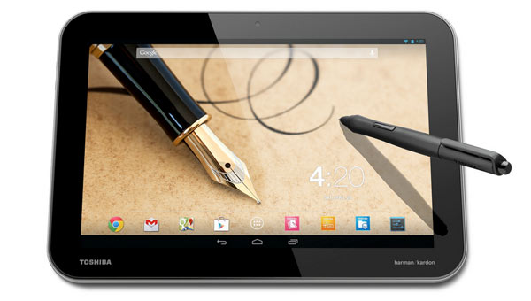 Een flinke stap hoger vinder we de Toshiba Excite Pro. Deze tablet beschikt ook over een 10.1-inch display maar met een resolutie van 2.560 bij 1.600 pixels. Daarnaast is de Tegra 3 processor vervangen voor een quadcore Tegra 4 variant, is de camera aan de achterzijde een 8 megapixel variant, wordt gebruikgemaakt van een nieuwe versie van Gorilla Glass en is het werkgeheugen verhoogd naar 2GB. Ook het interne opslaggeheugen en verdubbeld, van 16GB naar 32GB. Op de achterzijde bevinden zich daarbij luidsprekers die voorzien zijn van audiotechnologie van Harman Kardon en qua aansluitingen heb je de beschikking over microUSB en microHDMI. Voor deze tablet moet 429 euro betaald worden.