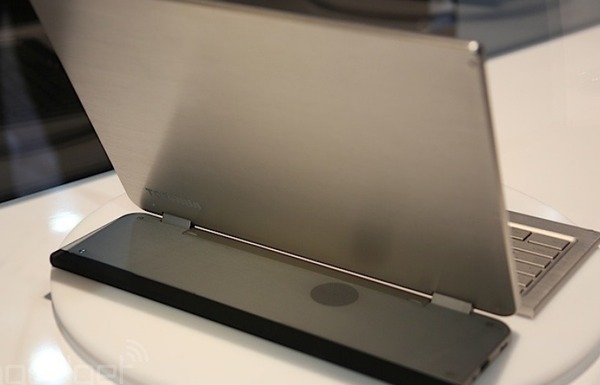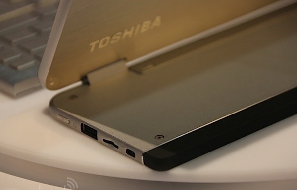 Het model dat de Japanse fabrikant toonde is nog een prototype maar Toshiba wil hiermee laten zien dat er meer mogelijk is met de hybride modellen dan we tot nu toe gezien hebben. Het concept bestaat uit een keyboard, een display (de tablet) en een standaard die aan het display gekoppeld is.