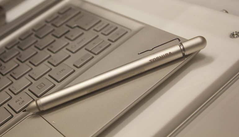 De resolutie van het scherm is 1920 bij 1280 pixels. Verder weten we dat de Toshiba DynaBook een Intel Atom-processor heeft (op dit moment, maar dat kan nog veranderen), maar meer is er niet bekendgemaakt tijdens de presentatie en persmomenten. De processor zorgt er samen met de plastic materialen voor dat de tablet zo licht kan blijven, zelfs wanneer je hem hebt gekoppeld aan het toetsenbord dat je hierboven op de foto’s kunt zien, die zijn gemaakt bij Toshiba.