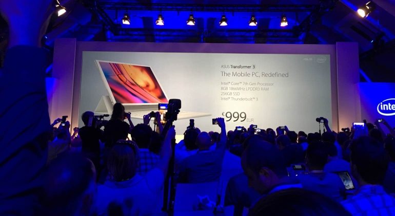 De Asus Transformer 3 met een Intel Core m7-processor, 8GB aan werkgeheugen en 256GB aan opslaggeheugen krijgt een prijs van 999 euro mee.