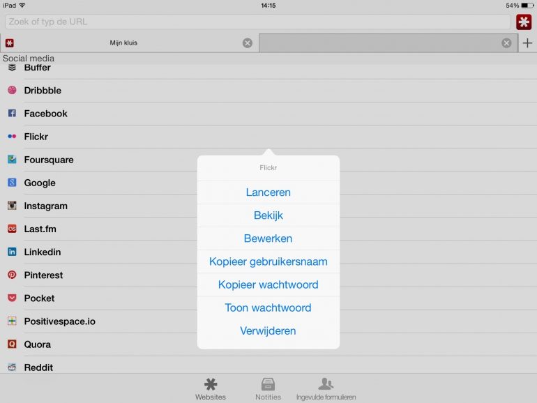 Mocht je de investering in 1Password het niet waard vinden, of betaal je liever per maand dan is Lastpass een geschenk uit de hemel. Lastpass ziet er iets minder gelikt uit dan 1Password, maar biedt dezelfde functies. Bovendien kun je je wachtwoorden die in Lastpass opgeslagen zijn ook vanuit je webbrowser openen. Je hoeft dus niet eerst een app te installeren, maar kunt gewoon meteen inloggen via de website. Handig als je bij vrienden of familie even ergens wilt inloggen en niet meteen een programma wilt downloaden.
