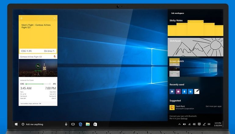 Microsoft heeft ook de nodige aandacht gegeven aan de ondersteuning voor de stylus. Met Windows Ink doelt Microsoft op de verbeterde ondersteuning van de stylus. De Anniversary Update zal ook beschikken over een inkt werkplaats. Zodra een gebruiker daar bijvoorbeeld aan aantekening heeft gekriebeld, kan Cortana die vertalen en bijvoorbeeld in de agenda plaatsen. Met Screen Sketch moet het mogelijk worden om overal aantekeningen op te plaatsen. Dus ook bovenop foto’s.