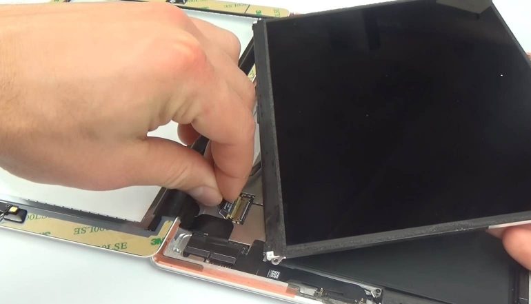- Scherm: het vervangen van een iPad-scherm is goed zelf te doen. Het scherm van de iPad is los te vervangen van het LCD. Het repareren van een iPad scherm duurt wat langer dan het repareren van een iPhone-scherm. Wanneer je het scherm wilt vervangen zal je ook het LCD moeten verwijderen (zo kan je het scherm aansluiten op het moederbord). Het is belangrijk om altijd een goede reparatie handleiding te gebruiken bij deze reparatie.