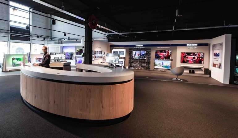 Wie graag online shopt kan terecht op de website PlatteTV.nl. Maar als je liever even binnen wandelt in de winkel, dan kan dat in Amsterdam, Arnhem, Breda, Doesburg, Doetinchem, Eindhoven, Nijmegen en Utrecht. De mooie, bijzonder ruime winkel in Eindhoven is een plezier om binnen te wandelen. Centraal staat de balie waar je steeds terecht kunt voor al je vragen. Of je maakt eerst even een rondje langs de verschillende opstellingen van elk merk. De tv’s zijn zo geplaatst dat je ze comfortabel kunt bekijken en vergelijken, vanop een afstand die overeenkomt met een typische woonkamer. En wat opvalt: alle nieuwste modellen zijn hier te bekijken. Van de mooiste OLED-modellen tot de nieuwste QLED-tv’s, ja zelfs de gloednieuwe 8K tv’s van Samsung kan je hier al bewonderen.