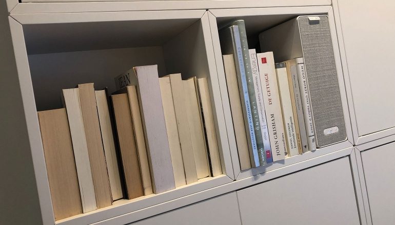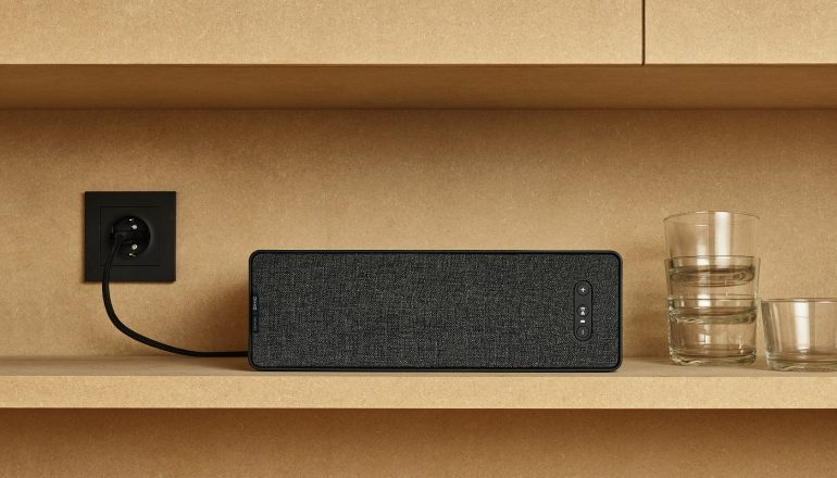 De boekenplank-speaker kun je zowel ophangen als neerzetten (horizontaal of verticaal) en brengt volgens beide bedrijven een ‘sound die opgaat in de kamer’. Dit kun je zowel letterlijk als figuurlijk nemen, want de speaker zelf kan door de rechthoekige vorm gemakkelijk tussen je boeken in de IKEA BILLY-boekenkast of Ikea KALLAX-kast geplaatst worden. De speaker zal hierdoor helemaal wegvallen in je interieur. Of hang deze boekenplank-speaker (middels een muurbeugel van 10 euro of een speciale accessoire voor aan een keukenrek, eveneens voor 10 euro) op en gebruik hem als plankje naast je bed, want de speaker kan tot maximaal 3 kilogram aan gewicht dragen. Je kunt zelfs de IKEA KUNGSFORS-rail gebruiken om de boekenplank-speaker aan te bevestigen, maar ook andere rails moeten te gebruiken zijn. Met de wandsteun wordt overigens ook een rubberen voor bovenop de speaker geleverd zodat producten die je erop legt netjes blijven liggen.