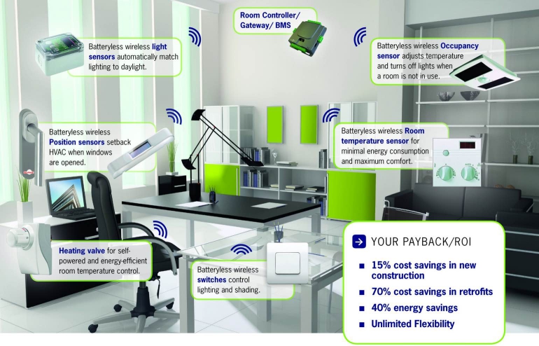 EnOcean is een ontwikkelaar van batterijloze draadloze technologie. Het bedrijf produceert en distribueert energie-autarkische draadloze modules voor toepassing in gebouwen, slimme woningen en het IoT. De oplossingen van EnOcean zijn gebaseerd op geminiaturiseerde energie-omzetters, energiezuinige elektronica en betrouwbare standaards voor draadloze communicatie in het sub-1-GHz-bereik (EnOcean-Wireless) en in het 2,4GHz-bereik (ZigBee of in de toekomst Bluetooth). De clou van de EnOcean-technologie is dat de energie voor de draadloze modules van de apparaten lokaal wordt geproduceerd door energie-omzetters, dat kan zijn door beweging, licht of temperatuur(verschil). Om dat te laten werken moet met kleine hoeveelheid gewonnen energie uiterst spaarzaam worden omgegaan. Dat betekent niet alleen het toepassen van energiezuinige hardware, maar ook een goed doordacht energiemanagement en energie-efficiënte communicatie.