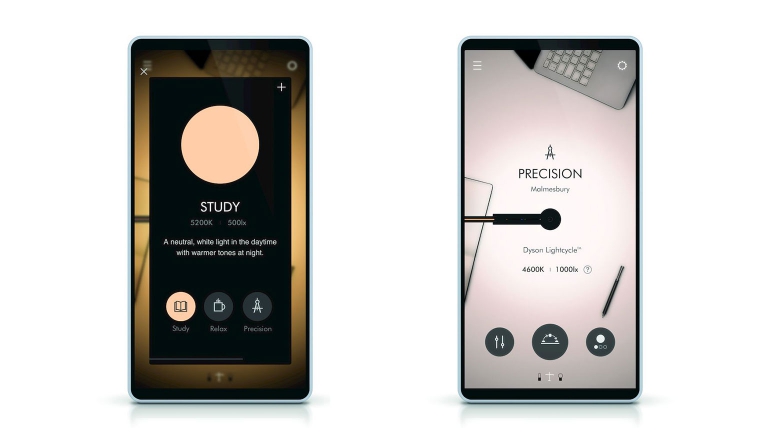 Via de app van Dyson is het mogelijk de lamp in te stellen. Ook kun je hier je leeftijd invoeren, wat effect kan hebben op de lichtkwaliteit. Zo heeft een 65-jarige bijvoorbeeld tot vier keer meer licht nodig dan een 20-jarige. De app heeft verschillende functies voor verschillende bezigheden: studeren, ontspannen, precisie, boost, wake-up, slaapstand en afwezig. Het heeft ook handmatige bediening met slide-touch om het licht te dimmen en kleur en temperatuur te selecteren waarbij uit de persoonlijke lichtvoorkeuren gekozen kan worden.