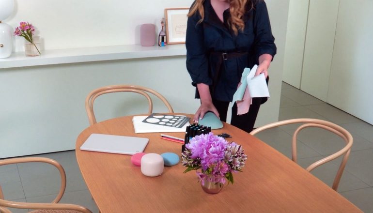 Nogmaals: Google Nest Speaker is waarschijnlijk niet de naam van het apparaat, maar we moeten hem hier toch een naam geven. Google heeft niet alleen de afbeeldingen en een video vrijgegeven, maar ook bevestigd dat de speakers stereo pairing ondersteunen. Je kunt dus twee van deze speakers draadloos met elkaar verbinden en genieten van geluid in stereokwaliteit. Op de foto’s zien we verschillende Google-medewerkers van de speaker gebruikmaken. Op dit moment wordt de speaker ook voornamelijk thuis ontwikkeld door Google.