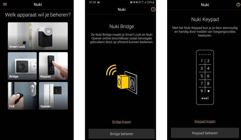 - Nuki Keypad. Dit compacte klavier kan je aan de buitenzijde van je deur bevestigen om via een code binnen te komen. Na het indrukken van de code ontgrendelt en opent je deur.