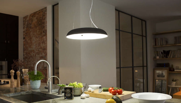 De Hue Fair zijn ronde White Ambiance-lampen en zijn verkrijgbaar als plafondlamp en als hanglamp. De modellen zijn verkrijgbaar in het wit of in het zwart en de doorsnede is 44,4 centimeter. De plafondlamp kost 169,99 euro en de hanglamp 183 euro.