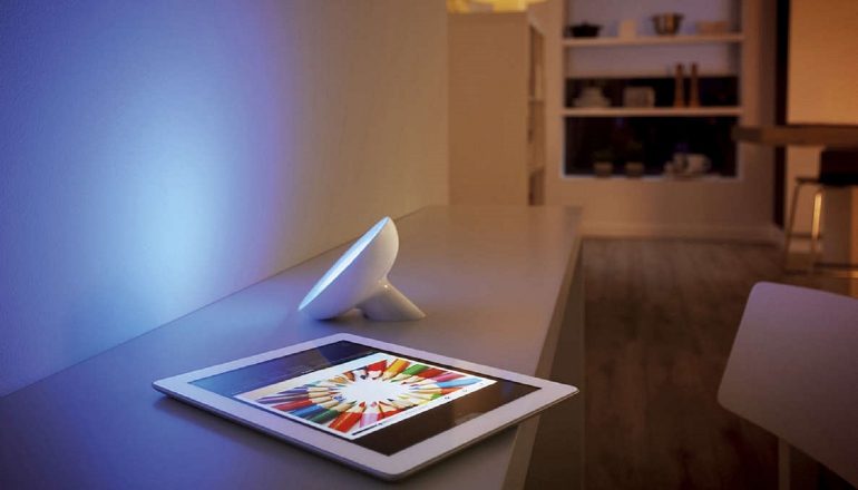 De Philips Hue Bloom is een compacte lamp die je gemakkelijk ergens neerzet om sfeer in huis te creëren. Dit White and Color-model met 120 lumen is verkrijgbaar vanaf 61,95 euro.