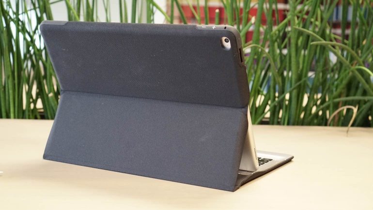 Logitech verkoopt deze cover in een paar verschillende kleurstellingen. In Nederlandse Apple Stores zijn op dit moment alleen de Space-Grey/Zwart en Goud/Rood combinatie verkrijgbaar. Wij hadden bij onze witte iPad Pro natuurlijk het liefst de de blauw-witte variant gezien maar die is nog niet verkrijgbaar. Deze accessoire doet natuurlijk ook dienst als beschermhoes en zoals je gewend bent van Logitech hebben we op dat gebied niets te klagen. Alle hoeken zijn goed beschermd en de stevige stof aan de buitenkant van de cover wekt genoeg vertrouwen dat het tegen een stootje kan.