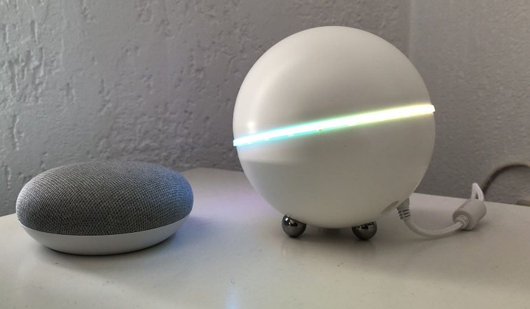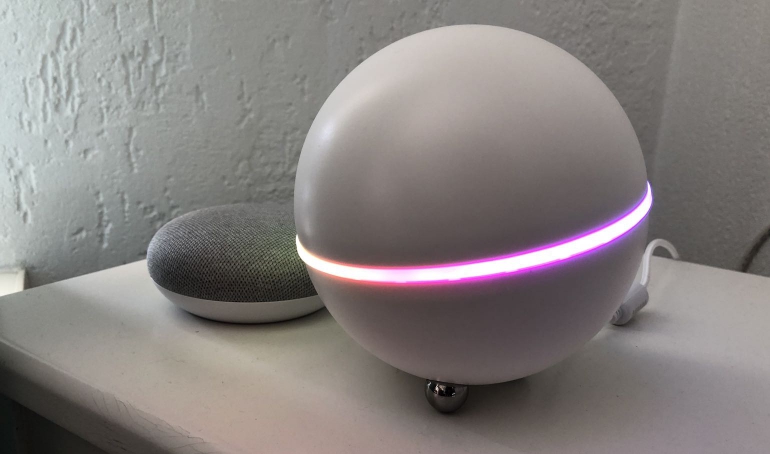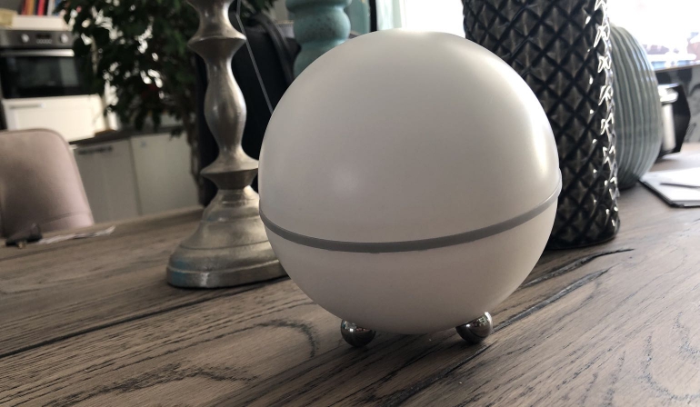 De Homey is op het eerste gezicht geen geavanceerde computer die je in huis plaatst. Het is zelfs een stijlvolle toevoeging aan het interieur. Het kleine, bolvormige apparaat staat op drie zilverkleurige pootjes, komt met een pulserende of kleurende led-ring en is netjes afgewerkt. Middels de usb-kabel kan de Homey aangesloten worden op een stopcontact en eigenlijk heb je er verder geen omkijken meer naar. Je kunt overigens de helderheid van de led-ring naar beneden bijstellen of de Homey middels kleuren het weer laten tonen.