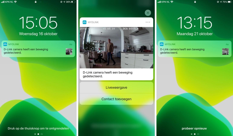 Meldingen werken snel en goed, al hebben we het idee dat er ergens toch een maximaal aantal meldingen per een specifiek aantal minuten vaststaat. Soms krijgen we namelijk geen push-melding en soms wel. Dat is vervelend en aangezien het niet door de gebruiker aan te passen is, kan dit het idee van veiligheid negatief beïnvloeden. Gelukkig worden er wel altijd opnamen gemaakt, of je nu wel of geen melding krijgt. Daarbij krijgen we niet altijd een thumbnail van de beweging in de pushmelding. Tot slot is er nog de privacymodus, een modus waarbij de lens wegdraait waardoor de camera niets meer opneemt. Een privacymodus juichen we altijd toe, al is het dus jammer dat het automatiseren de mogelijkheden beperkt.