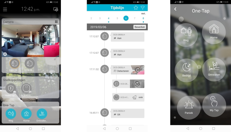 Zo soepel als de fysieke installatie van de wifi-hub en camera’s verliep, zo onhandig werkt de app. Het heeft me dan ook zeker twee uur gekost voordat alles zo ingesteld was als ik wilde. Zoals collega Wesley ook al opmerkte in de review van de D-Link Full HD Pan & Tilt Wi-Fi Camera werkt de mydlink-app nogal omslachtig. Het is onduidelijk waar je bepaalde functies kunt vinden en tevens lijken de instellingen op veel plekken dubbel te zijn.