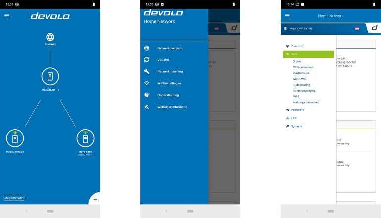 Het meegeleverde boekje bevat een duidelijk stappenplan en laat je met minimale kennis de Devolo Magic 2 installeren. Wanneer je de Devolo Home Network-app downloadt, dan word je ook nog even snel door het installatieproces geholpen, nadat je de barcode op de doos hebt gescand voor een snelle installatie. In beeld verschijnen nu de drie adapters die je net in het stopcontact hebt gestopt. Als je de informatie bevestigt, dan zal de app verder het werk overnemen en automatisch het meshnetwerk gaan opstarten.