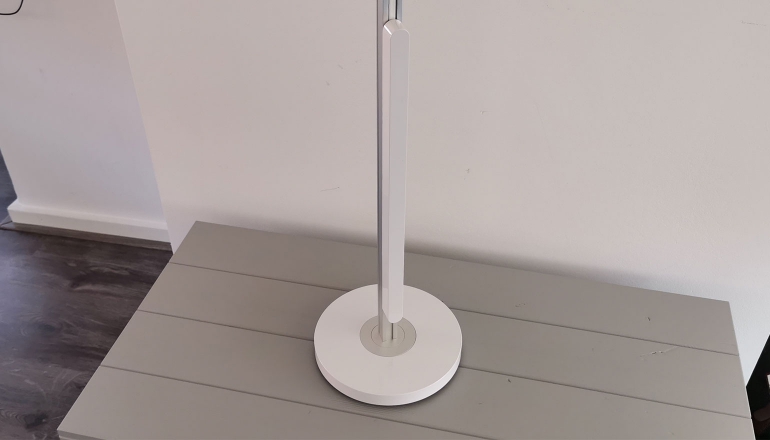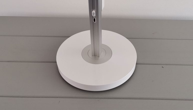 De lamp heeft een industrieel en minimalistisch ontwerp. Dat is een type ontwerp dat je meteen tof vindt of niet. De lamp leunt op een zware voet waar je de stang in plaatst (die je aan de onderkant vastzet). In die stang zit ook een usb-c-poort voor het opladen van smartphones en andere accessoires. Aan de zijkant zit een verzwaard element waarmee je de hoogte kunt aanpassen. Het systeem doet denken aan een liftsysteem: gaat het element omhoog, dan gaat de lamp omlaag. En gaat het element omlaag, dan gaat de lamp omhoog.
