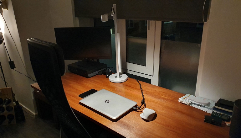 Maar dan nog is het fijn om deze lamp boven je hoofd te hebben hangen. Door het instellen van de juiste hoogte en dat te combineren met het witte licht dat veel minder helder is ingesteld, zorgt dat voor een prettige werkervaring. De lamp zorgt niet voor hoofdpijn of iets dergelijks, juist vanwege al die mogelijkheden die er zijn. Hoewel we meer het subtiele element van deze lamp kunnen waarderen dan de heldere of fellere standen, is er toch nog altijd verschil te zien met de momenten waarop de lamp uitstaat; hij doet z’n werk dus goed.