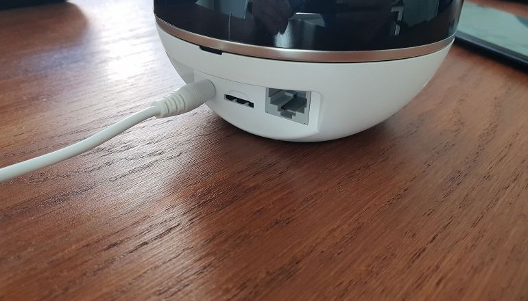 De EZVIZ C6T is een bolvormige camera met een platte onderkant. Daardoor is het mogelijk de camera rechtop neer te zetten. Aan de onderkant zit ook nog een aansluiting voor wandmontage, waarvan alle benodigde onderdelen worden meegeleverd door de fabrikant. Op de achterkant zit een ethernetaansluiting en een opening voor de stroomkabel. Links en rechts zitten twee speakers, terwijl je aan de rechterkant verder ook een microfoon en de resetknop aantreft. Ook kun je achterin nog een micro-sd-kaartje stoppen.
