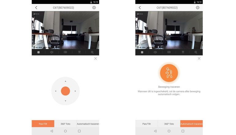 Een nadeel aan deze camera is dat die zich niet centreert na gebruik. Wanneer je hem uit de slaapstand haalt, dan valt op dat de camera vaak een andere positie aanneemt dan waar je hem hebt achtergelaten. Ook is er geen snelle manier om terug te gaan naar de positie in het midden (dat is waarschijnlijk de beste stand voor het overzicht van de kamer). Verder moet je er rekening mee houden dat de EZVIZ C6T niet automatisch terugkeert naar het midden wanneer die helemaal is gedraaid en dus ook niet kan reageren op bewegingen achter hem.