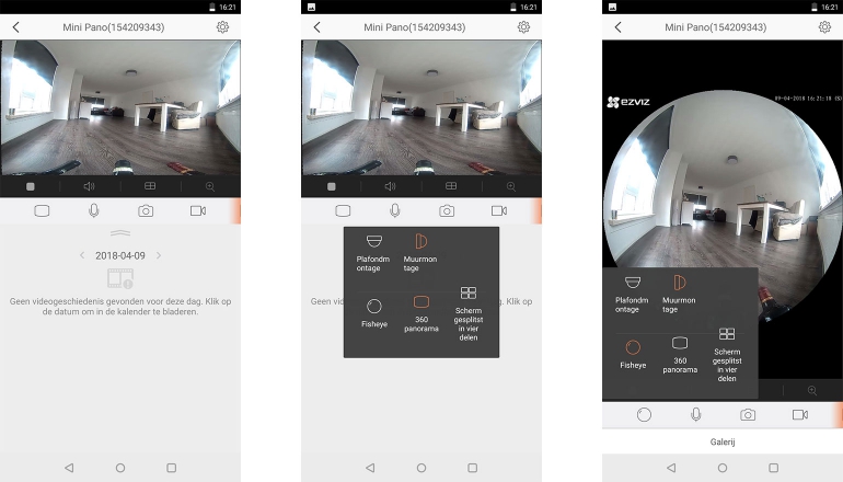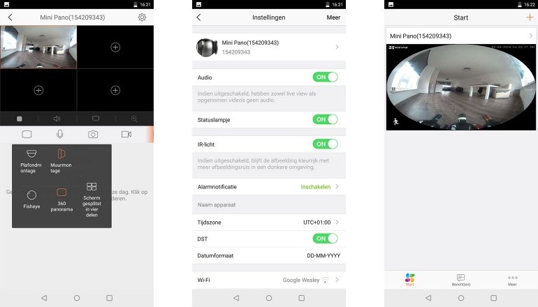Je zult de camera dus ergens op ooghoogte of nog iets lager moeten ophangen om je omgeving perfect in beeld te krijgen. Maar we kunnen ons voorstellen dat dat dan weer geen fijne plek is. Zo’n camera moet nou niet gaan opvallen, maar dat gebeurt dus wel als je hem aan de muur hangt. Wel zijn we te spreken over de beeldkwaliteit van de (live) feed. Met een sensor van drie megapixel hadden we geen hoge verwachtingen, maar de beelden zien er duidelijk en gedetailleerd uit. De resolutie van de Mini Pano bedraag 1.344 bij 1.344 pixels.