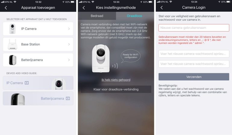 - Compatibiliteit camera in app is niet duidelijk