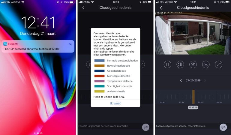 Er zijn nog maar weinig camera’s die je alles continu en vanuit de cloud laten terugkijken zonder dat je ervoor hoeft te betalen, en ook Foscam biedt de mogelijkheid dit tegen betaling te doen. Je kunt er natuurlijk voor kiezen om de camera bekabeld op een eigen monitoring- en opnamesysteem met opslagruimte aan te sluiten of de microSD-kaart te gebruiken, maar als je vanuit de cloud wilt werken moet hiervoor betaald worden. Zonder cloud-toegang kunnen gebruikers van Foscam-camera’s te live-feed bekijken en krijgen ze meldingen bij bewegingen, maar dit zonder beeld.