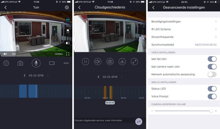 Over het algemeen is de Foscam-app een gebruiksvriendelijke applicatie die vlot werkt en je voldoende mogelijkheden biedt om de camera naar eigen wens af te stellen. Hier en daar is de vertaling naar het Nederlands niet optimaal maar hinderlijk is het niet. Wel hinderlijk is dat de app soms niet meer ziet dat je ingelogd bent en je de app opnieuw moet starten om weer in te loggen. Daarbij hadden we graag verwijzingen naar de VMS-software of web-interface gezien waardoor je in ieder geval weet dat je via die wegen nog veel meer uit je camera kunt halen.