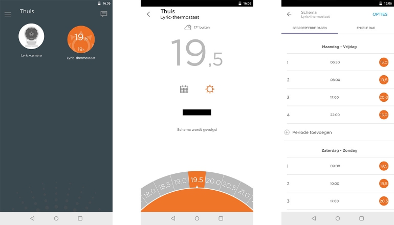 Naast de enorm toegankelijke applicatie tref je ook veel mogelijkheden met betrekking tot het opzetten van een schema aan, die je ook nog eens kunt aanpassen wanneer je wil. Dat is inclusief nieuwe schema-instellingen, zonder dat je daardoor hoeft af te wijken van het oude schema (die kan worden hervat na de nieuwe instellingen). Het baart ons toch een beetje zorgen dat de thermostaat soms de verbinding verliest, maar gelukkig wordt die ook zelf weer hersteld. En zolang dat blijft gebeuren, kunnen we de Honeywell Lyric T6R aanbevelen.