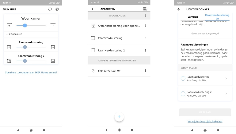 Voor de communicatie tussen de meegeleverde afstandsbediening en het rolgordijn heb je de meegeleverde signaalversterker nodig. Deze druk je in het stopcontact en vervolgens kun je met de afstandsbediening het rolgordijn openen en sluiten. Aangezien ik twee Fyrtur-rolgordijnen heb hangen moest ik ook twee signaalversterkers en twee afstandsbedieningen gebruiken. Gelukkig heb ik het één en ander kunnen koppelen via de Tradfri-hub en de Home Smart-app. Deze app is verkrijgbaar voor iOS en Android.