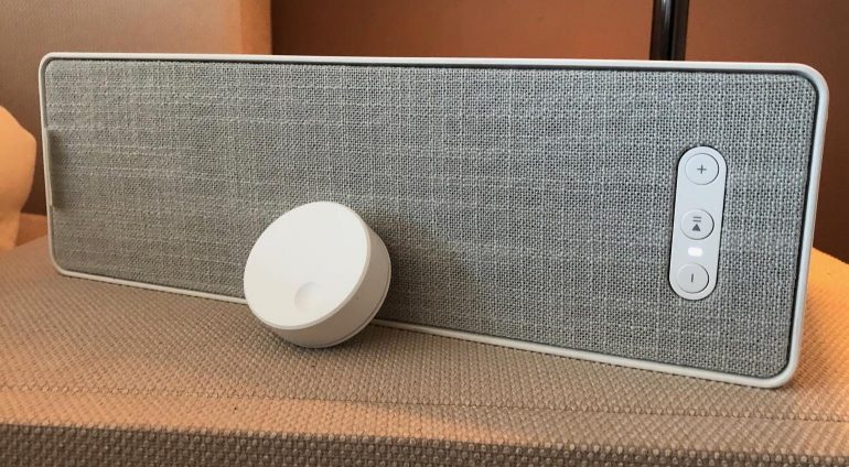 De IKEA Symfonisk-afstandsbediening is een fysieke remote om de boekenplank- en tafellamp-speaker van het bedrijf te bedienen. Maar, je kunt er ook andere Sonos-speakers in huis mee bedienen. De remote laat je muziek pauzeren, afspelen, het volume aanpassen en een vorig nummer of volgend nummer selecteren. De afstandsbediening is een klein en rond apparaatje dat je magnetisch op de wand kunt bevestigen met de meegeleverde houder, of je kunt hem op tafel plaatsen. Om de afstandsbediening te gebruiken met de Symfonisk-speakers heb je de IKEA Trådfri-verbindingshub nodig. De remote kent een prijs van 15 euro.
