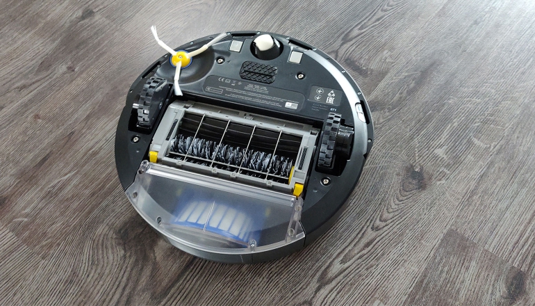 Het driestapsreinigingssysteem met zijborstel voor reiniging in alle hoeken is ontworpen voor het losmaken, oppakken en opzuigen van stof en vuil van allerlei vloertypen. En doordat de twee grote borstels – een om vuil mee los te maken en een om het op te vegen – samenwerken, verwijderen ze snel en grondig het vuil, stof, haren en andere rommel van vloeren. Op de bovenkant zitten drie knoppen (schoonmaken, dock en spot), evenals een klein display met informatie over de wifi-verbinding en de accu. Daarnaast is er een speaker aanwezig.