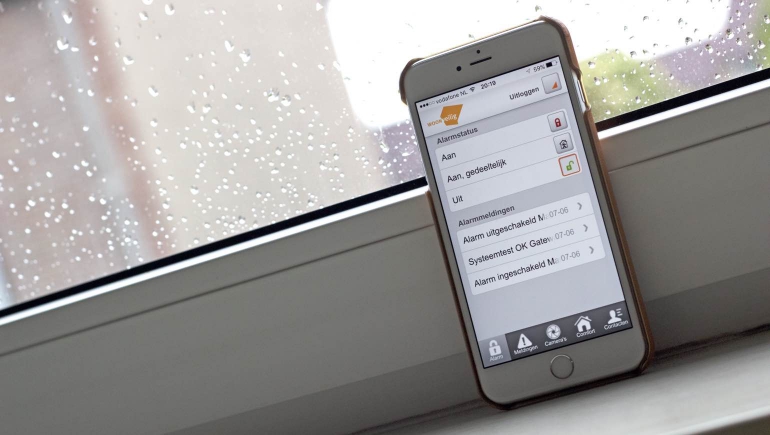 We hebben het hierboven al aangegeven maar de app is eigenlijk een soort controle-optie. De meeste instellingen zijn alleen via de online portal aan te passen en dat vinden we toch wat jammer. Het enige dat je via de app kunt doen is je alarm (deels) activeren of deactiveren, meldingen bekijken, de camera’s bekijken (mits in het abonnement), de slimme schakelaars bedienen en de contactpersonen bekijken. Even een sensor of instelling aanpassen of een contactpersoon toevoegen zit er niet in, wat ons betreft wel een gemis. Daarbij kan de app ook wel een likje verf gebruiken. Hij is heel simpel en werkt prima maar op onze iPhone 6 Plus ziet alles er opgeblazen en pixelig uit. Het ontbreekt een beetje aan de uitstraling van een slim, vooruitstrevend en innovatief smart home-systeem. Afgezien van die twee punten is het een gebruiksvriendelijke en stabiele app, waarin je ook de status van je systeem kunt zien. Zo heb je altijd de zekerheid dat je alarmsysteem correct geactiveerd is. Je kunt het zien als een geavanceerde afstandsbediening met statusmeldingen.