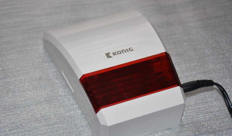 Dan is er nog de sirene, die veel lawaai kan maken: met 103 decibel loeit het alarm na een melding de meeste inbrekers wel weg, zo mag je hopen. Die sirene kun je overal in huis aanbrengen. Hij is voorzien van rode flitslampen en je kunt hem op het stopcontact aansluiten. Maar als dat niet voorhanden is op de plek waar je de sirene wilt hebben, zijn batterijen ook mogelijk voor de voeding van de sirene.