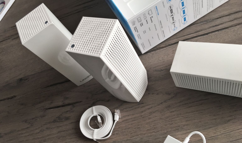Waar Linksys vooral de nadruk op legt is het gebruiksgemak. Het moet zo goed als plug-and-play zijn, en voor een snelle en gebruiksvriendelijke installatie dien je de gratis Linksys-app voor Android of iOS te downloaden. Allereerst is het echter een kwestie van het plaatsen van de units. De eerste unit komt in ons geval bij het modem, achter de tv in de woonkamer. De tweede unit komt op de werkkamer op de eerste verdieping en de derde unit plaatsen we op zolder, in de thuisbioscoop.