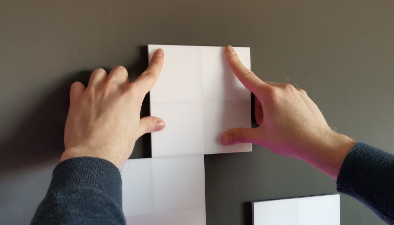 Voordat je begint is het namelijk zaak om de app te downloaden en deze te openen. De app heeft een hulpmiddel bij het maken van je eigen kunstwerk. Hierbij kun je zelf de negen panelen plaatsen zoals je zelf wilt. Probeer verschillende designs uit en je krijgt tevens te zien hoe het paneel precies moet hangen zodat de linkers op de juiste plek aangesloten kunnen worden. Heb je een design gemaakt waar je tevreden over bent? Kies de AR-modus en je krijgt in augmented reality te zien hoe het design er op jouw muur uit zal komen te zien. Een zeer handig en welkom hulpmiddel.