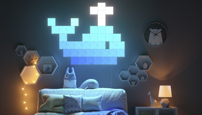 Nanoleaf ken je misschien al van de Aurora. De Nanoleaf Aurora bestaat uit slimme ledpanelen (driehoeken) die je naar eigen wens kunt ophangen en vervolgens van kleur en intensiteit kunnen veranderen. De panelen zijn onderling gekoppeld en via de app kun je ze aansturen. Hierbij kies je uit diverse effecten met kleurovergangen, waarbij je als het ware een lichtgevend kunstwerk aan de muur hebt hangen. Later kwam hier nog een Rhythm-module bij, waarbij de ledpanelen ook konden reageren op muziek.