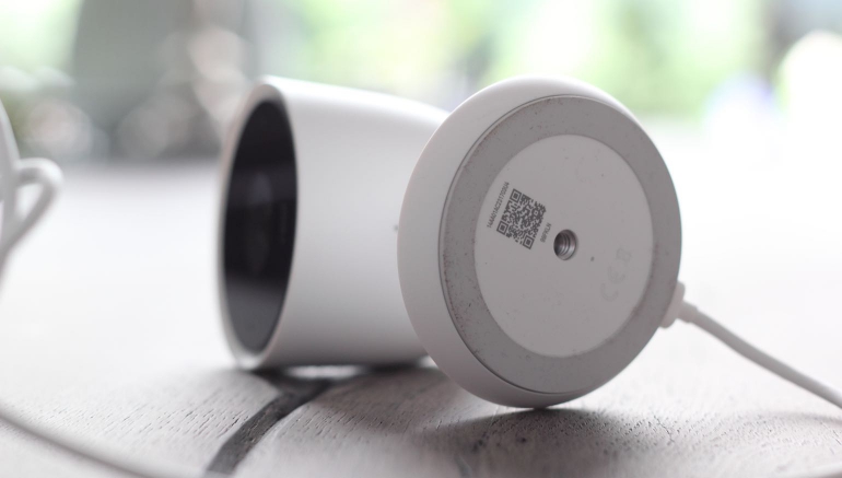 De camera ziet er uit als een klein lampje of spotje en is dus wat forser dan de originele Nest Cam. Nu is dat geen ramp want de camera ziet er bijzonder strak uit, is netjes afgewerkt, valt niet teveel op en kan stevig, stabiel en in meerdere hoeken geplaatst worden. Het deel van de lens is nog altijd zwart. Er zijn ook deze keer led-lampjes aanwezig, waaronder het groene lampje (is uit te schakelen) waardoor je ziet dat er iemand meekijkt. Een nieuwe led-ring licht op wanneer er gepraat wordt via de camera. De camera is ook deze keer niet zonder stroomvoorziening te gebruiken.