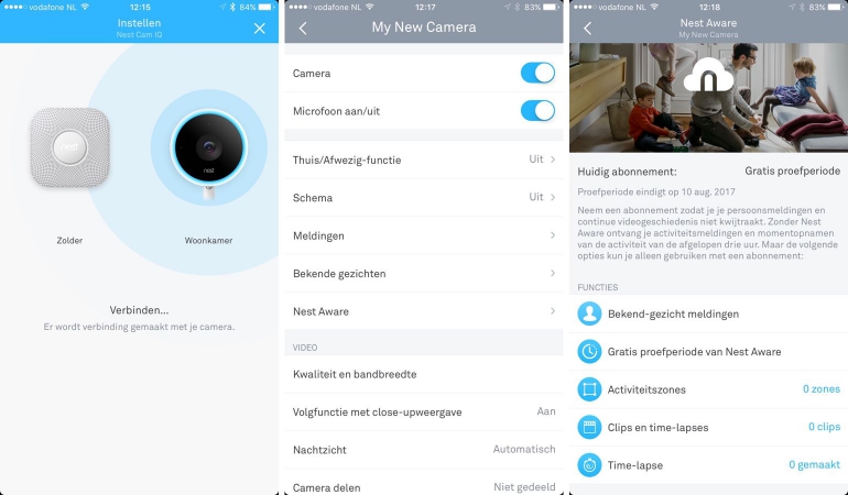 Qua instellingsmogelijkheden is er ten opzichte van een jaar terug niet bijzonder veel veranderd. Ja, Nest heeft de app diverse malen verbeterd maar de belangrijkste functies staan nog altijd overeind. Je kunt via de applicatie, die overigens nog altijd zeer gebruiksvriendelijk en goed vormgegeven is, alle instellingen van je Nest Cam IQ aanpassen.
