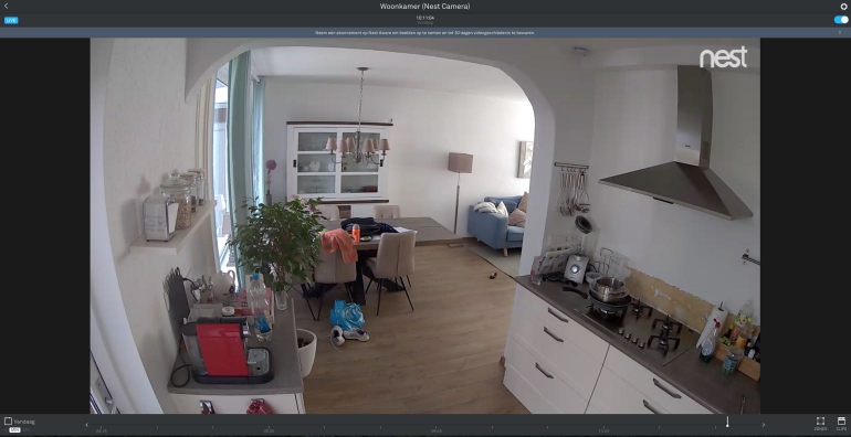Zonder abonnement biedt de Nest Cam IQ 3 uur terugkijken in de tijd (met alleen screenshots van activiteiten), live kijken, praten en luisteren via de camera en inzoomen op beelden. Je krijgt een melding als er wat gebeurt maar terugkijken wat er precies gebeurd is, is niet mogelijk. Speciaal voor de Nest Cam IQ is hier de ‘persoonsmelding’ zoals hierboven beschreven aan toegevoegd.