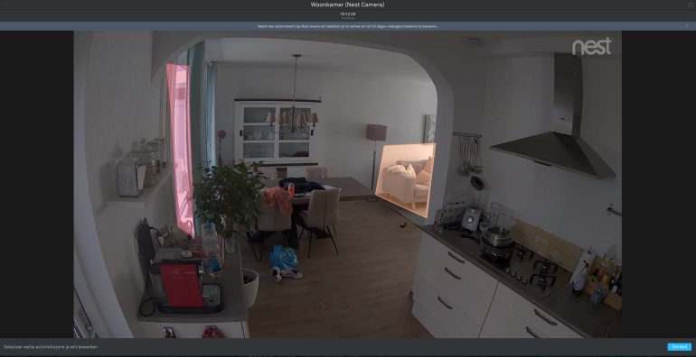 Deze laatste optie maakt het bijvoorbeeld mogelijk een zone voor de voordeur aan te maken, waarna je een melding krijgt wanneer er puur in die zone iets gebeurt. Ook kun je een specifieke zone uitsluiten van meldingen. Het aanmaken van een zone is zeer eenvoudig en kan handig zijn wanneer je bijvoorbeeld huisdieren hebt waarvan je geen melding wilt ontvangen of wanneer je een brievenbus in beeld hebt waarvan je niet elke keer als er een brief op de mat valt een melding wilt hebben.