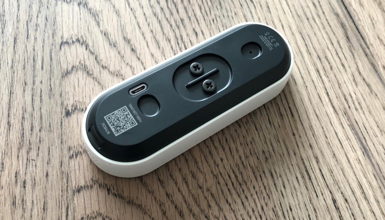 In vergelijking met de Ring Video Doorbell 2 is de Hello dus een stuk kleiner, met een afmeting van 117mm x 43mm x 26mm, maar daarbij moet gezegd worden dat de Ring over een accu beschikt, terwijl de Nest alleen op stroom werkt, waarover later meer. Het kleinere formaat zorgt er wel voor dat de Hello bij sommige deuren precies op het kozijn past, waar de Ring iets te groot voor is.