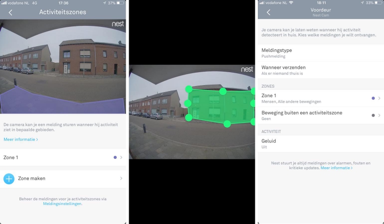Op de beeldkwaliteit van de Nest hebben we niks aan te merken; dat is dik in orde en het is de beste beeldkwaliteit die we tot nu toe van een deurbel gezien hebben. Beelden zijn in hoge resolutie (1600 x 1200 pixels) helder, vol contrast en met een perfecte kleurweergave. Dankzij de 4:3 beeldverhouding en 160 graden kijkhoek zie je zelfs wat er op de stoep staat en je kunt daarbij nog zoomen en in volledig beeld van links naar rechts draaien. Ook de kwaliteit van het nachtzicht is zeer goed; met voldoende details en duidelijke contrasten. De audiokwaliteit is iets minder en dat komt met name doordat de microfoon iets gevoeliger lijkt voor wind. De wind waait soms hard in onze straat, en dat zorgt voor wat herrie via de camera. Echter, gesprekken zijn goed te voeren via de Hello dus een groot minpunt is het zeker niet. De bewegingssensor doet zijn werk in combinaties met activiteitenzones (mits je een abonnement hebt) zeer goed, zoals we gewend zijn van onder andere de Nest IQ camera.