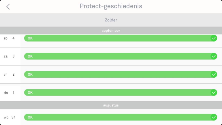 Via de app kun je direct een controle uitvoeren, om te zien of de Protect nog naar behoren werkt. Daarnaast is een knop aanwezig om de geschiedenis te bekijken en kun je direct zien wanneer de verschillende sensoren en functies voor het laatst getest zijn. Het is van belang dat je de app zo nu en dan eens opent om te zien of de Protect zijn werk nog doet en om even een test uit te voeren. De tweede generatie Nest Protect gaat volgens de fabrikant tien jaar mee dus je zit voorlopig goed met deze melder.
