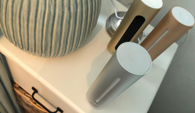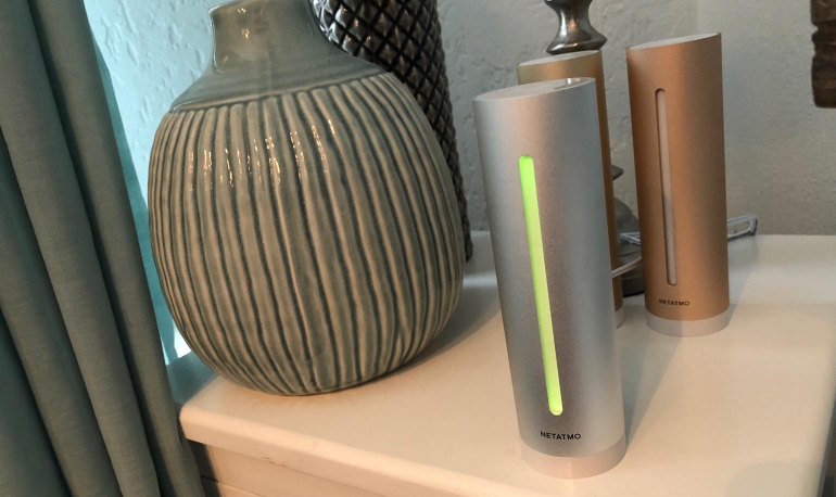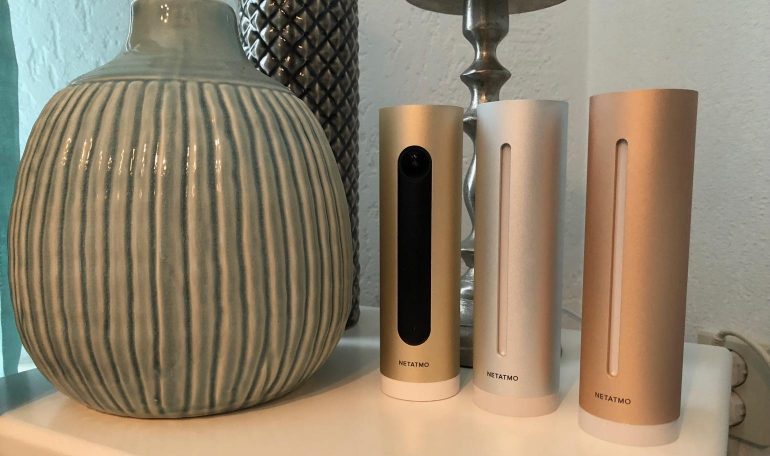 Het Netatmo Personal Weather Station is een weerstation dat je inzicht geeft in het weer buiten en het ‘weer’ binnenshuis. De basis bestaat uit een binnenmodule (ook wel de hub) en een buitenmodule. Middels de buitenmodule kun je voor buiten de temperatuur, de luchtdruk, de luchtvochtigheid, de luchtkwaliteit en natuurlijk de weersvoorspelling zien. De binnenmodule geeft je inzicht in de luchtkwaliteit, de temperatuur, de geluidskwaliteit (aantal dB) en de luchtvochtigheid. De metingen van beide apparaten kun je middels de Netatmo Weather Station-app bekijken. Deze basisset heeft een adviesprijs van 169 euro. Op de foto hieronder zie je de binnenmodule, met daarnaast de Netatmo Welcome camera en de Netatmo Home Coach die we later testen.