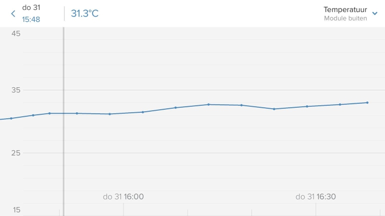 De buitenmodule, regenmeter en windmeter zijn wat lastiger te vergelijken maar lijken een eerlijke weergave van de verschillende metingen te geven. Deze metingen kunnen we namelijk vergelijken met de metingen van andere Netatmo-gebruikers in de omgeving. Natuurlijk is een en ander afhankelijk van de exacte plaatsing. Onder een overkapping is het immers warmer dan onder een dakgoot, en het ligt er ook maar net aan in welke richting de sensor geplaatst is. Zowel de temperatuur als de windmetingen komen in veel gevallen genoeg overeen met de metingen van andere gebruikers in de omgeving om ze als redelijk accuraat te bestempelen, wel na de compensatie voor de windmeter ingevoerd te hebben. De regenmeter is wat lastiger aangezien regen – zeker in deze periode met hoosbuien – zeer plaatselijk kan zijn. Toch lijkt de regenmeter een fair beeld van de neerslag te geven.