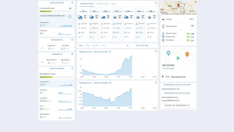 Hier en daar is de vertaling niet 100 procent soepel, er zitten twee of drie kleine bugs en het duurt even voordat je weet waar alles zit en wat het betekent, maar al met al is de applicatie gebruiksvriendelijk, modern en strak. Je kunt overigens ook via de website van Netatmo inloggen, waar je een mooi overzicht van al je metingen krijgt.